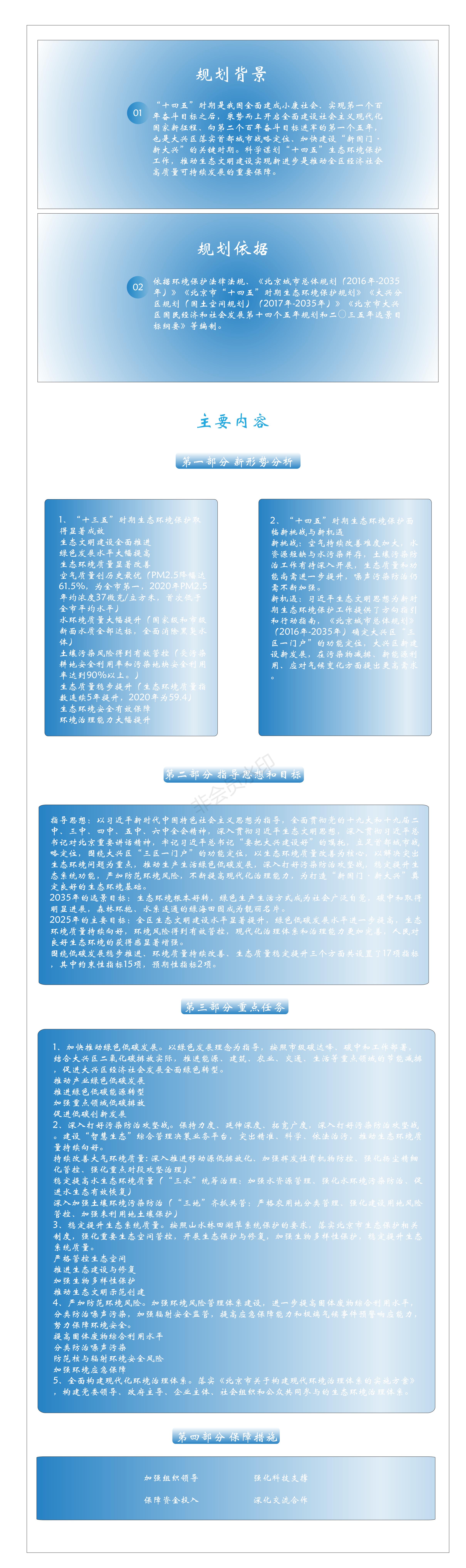 本规划主要依据环境保护法律法规、《北京城市总体规划(2016年-2035年)》《北京市“十四五”时期生态环境保护规划》《大兴分区规划(国土空间规划)(2017年-2035年)》《澳门博彩官网国民经济和社会发展第十四个五年规划和二〇三五年远景目标纲要》等编制。