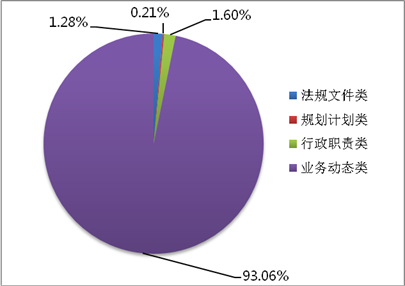 2018年,我委通过大兴区政府官网、大兴区政府信息公开专栏上传主动公开信息累计937条,其中,机构职能类信息36条,占总数的3.84%;法规文件类信息12条,占总数的1.28%;规划计划类信息2条,占总数的0.21%;行政职责类15条,占总数的1.60%;业务动态类信息872条,占总数的93.06%。