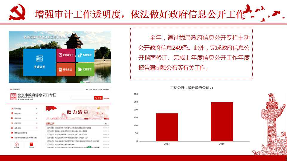 1.完善制度,规范政府信息公开工作。根据《条例》等文件精神,结合审计工作实际情况,丰富和完善现有制度,促进政府信息公开工作规范化、科学化、法制化。