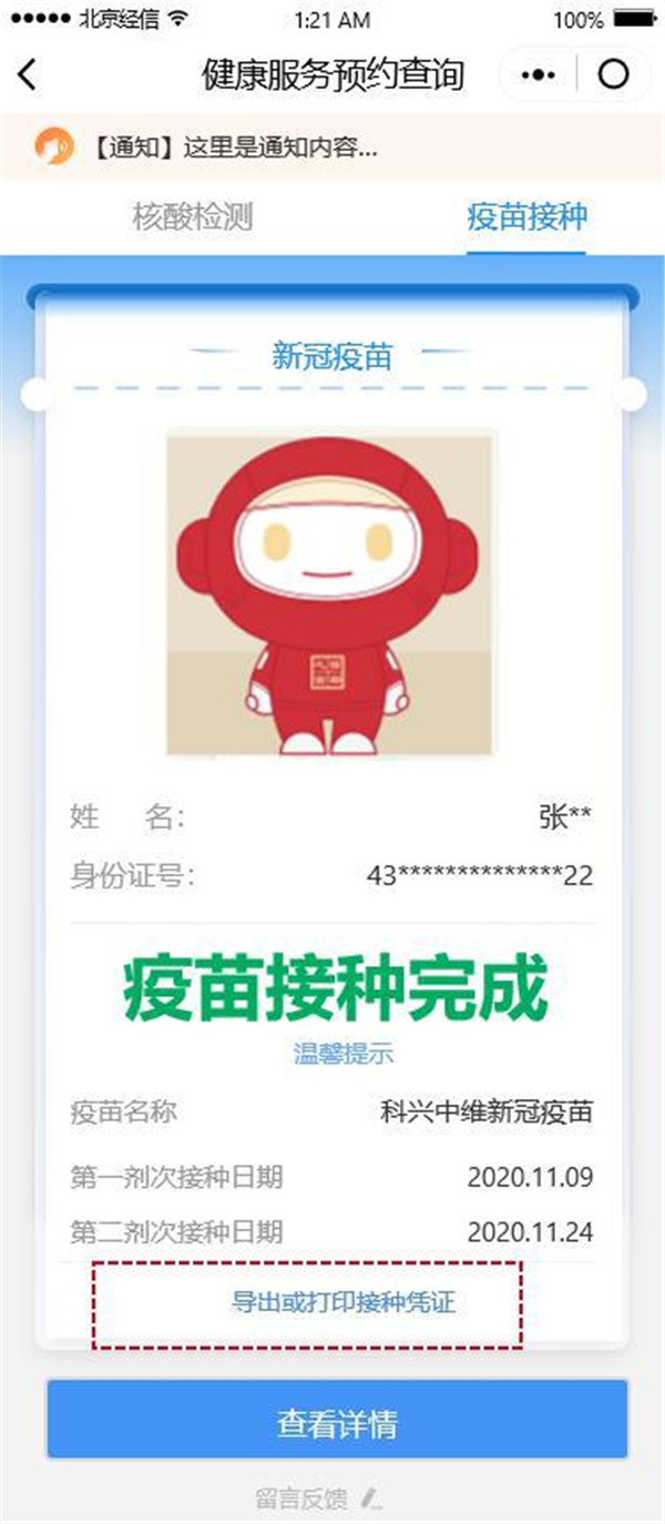 如何导出或打印接种凭证?