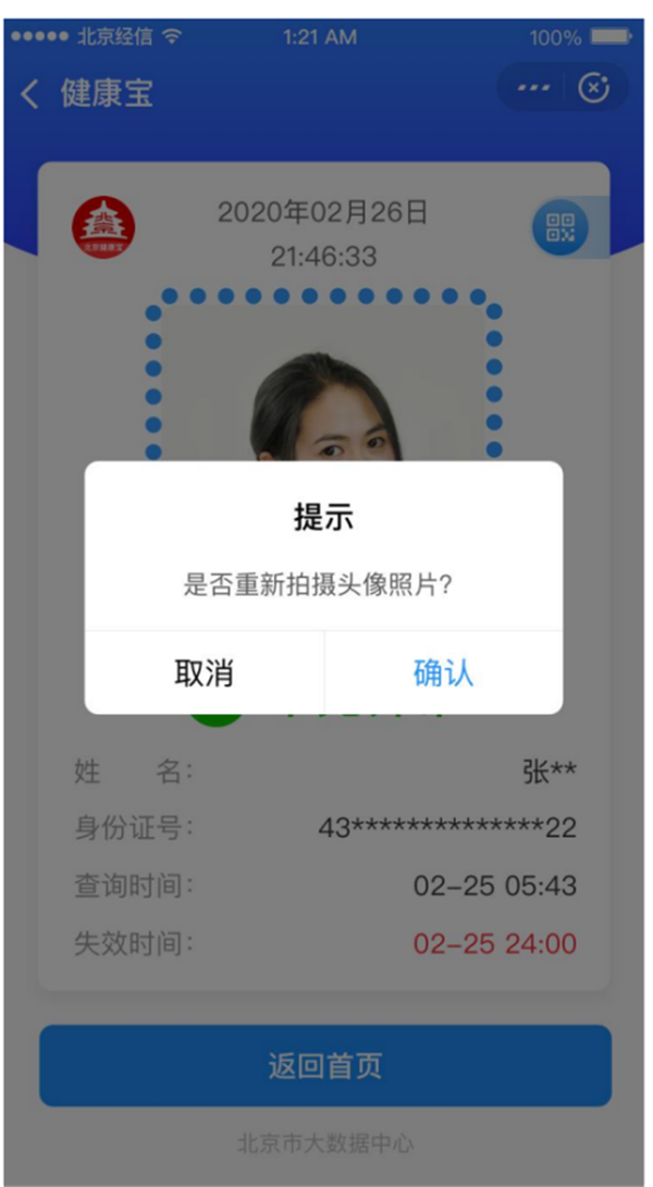 我们在用“健康宝”小程序时是不是有这样的困惑:要是对健康状态展示页头像照片不满意怎么办?还能重新拍吗?当然可以啦!